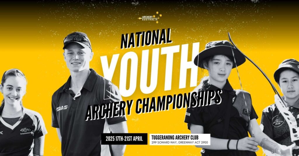 2025 National Youth Archery Championships Archery Australia is excited to announce that the entries to the 2025 National Youth Archery Championships will open at 27th November 2024. When: 17th – 21st April 2025 Where: Tuggeranong Archery Club – ACT Events: Youth Target Championships – a combination of the 720 and 900 round scores. – Youth […]