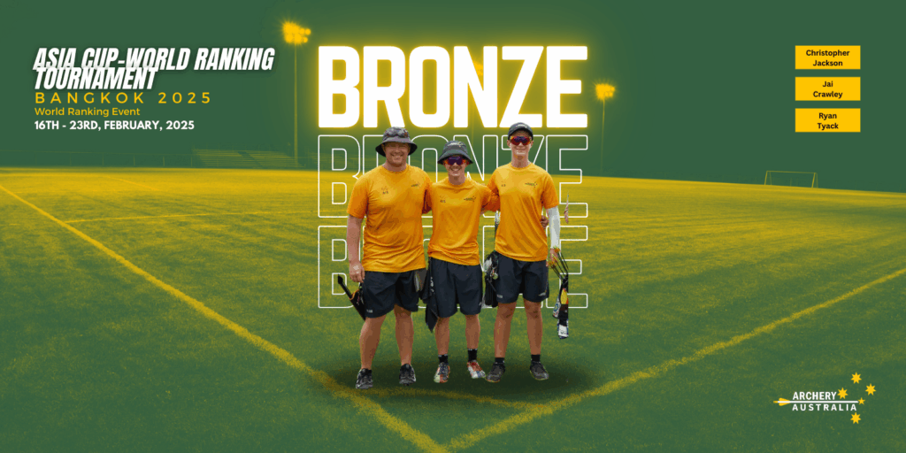 The Australian Men’s Recurve Team delivered a composed and high-caliber performance at the Asia Cup #1, securing the bronze medal in a day of intense matchplay. The trio of Ryan Tyack, Jai Crawley, and Chris Jackson showcased exceptional teamwork, composure, and technical precision, particularly excelling under the pressure of multiple shoot-offs. Their campaign began in […]